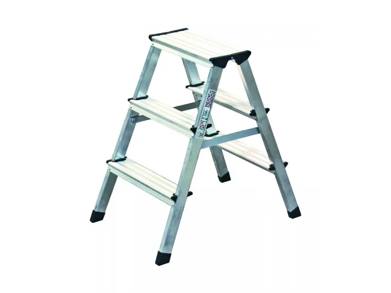A kiváló minőségű, 2 x 3 fokos, 2 oldalán járható alumíniumlétra - a csúszásmentes lábaknak köszönhetően - maximális biztonságot nyújt munkavégzés közben. A 80 mm mély lépcsőfokok kényelmes fel- és lelépést biztosítanak.